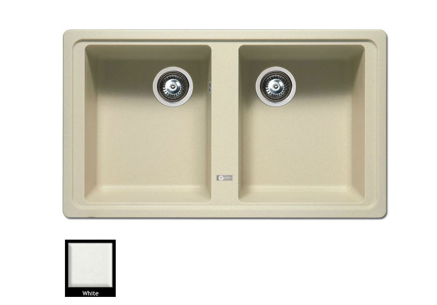 Ένθετος νεροχύτης γρανίτη με δύο συμμετρικές γούρνες χωρίς ποδιά, Carron Phoenix μοντέλο: Debut 286 White 86x50 cm. Διατίθεται επιπλέον σε αποχρώσεις Beige, Ivory, Graphite, Cappuccino & Oyster. Μια πλήρης γκάμα νεροχυτών, που διακρίνονται για την εξαιρετική τους αντοχή, την υψηλή ποιότητα και τα φυσικά χρώματα, συνδυάζουν άψογα την κομψότητα και την εργονομία.