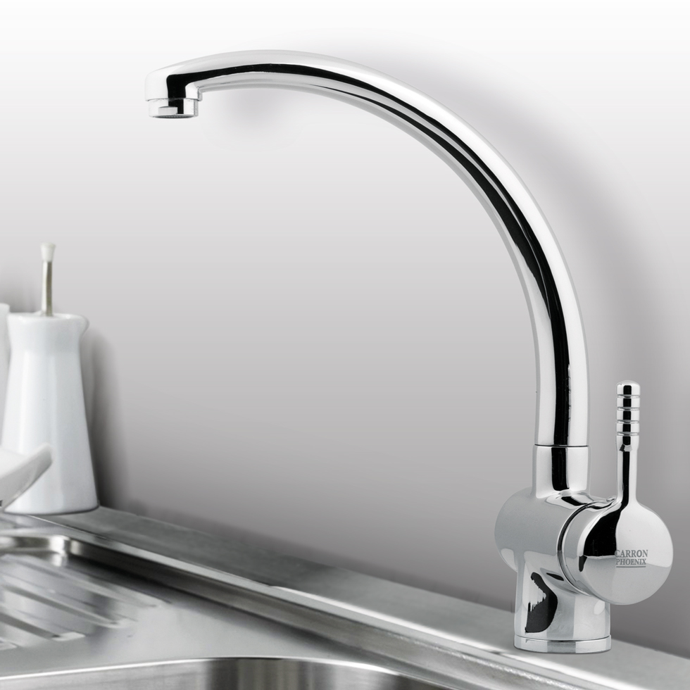 Μπαταρία κουζίνας με υψηλό περιστρεφόμενο ρουξούνι φινίρισμα χρωμέ, Carron Phoenix SPLIT 5112. Όλες οι σειρές των μπαταριών Carron Phoenix έχουν σχεδιαστεί για να σέβονται την αισθητική και το περιβάλλον. Όλα τα προϊόντα έχουν ιδανική σχέση ποιότητας – τιμής.