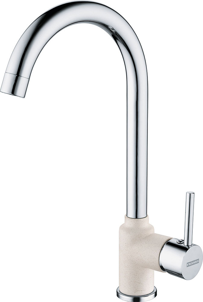 Αναμεικτική μπαταρία κουζίνας με ψηλό περιστρεφόμενο ρουξούνι 360° της FRANKE μοντέλο: POLA Standard Chrome / Vanilla. Οι μπαταρίες Franke έχουν κατασκευαστεί με βάση κορυφαία πρότυπα. Η αρμονία του design, των σχημάτων και των υλικών δημιουργούν απαράμιλλη αισθητική, αναδεικνύοντας κάθε κουζίνα.
