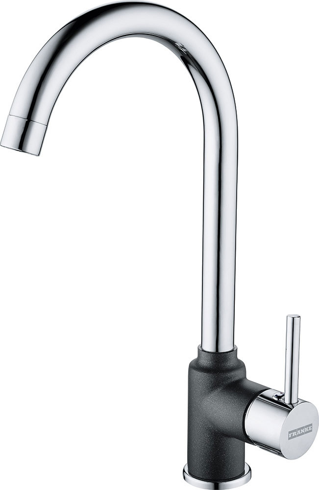 Αναμεικτική μπαταρία κουζίνας με ψηλό περιστρεφόμενο ρουξούνι 360° της FRANKE μοντέλο: POLA Standard Chrome / Onyx. Οι μπαταρίες Franke έχουν κατασκευαστεί με βάση κορυφαία πρότυπα. Η αρμονία του design, των σχημάτων και των υλικών δημιουργούν απαράμιλλη αισθητική, αναδεικνύοντας κάθε κουζίνα.