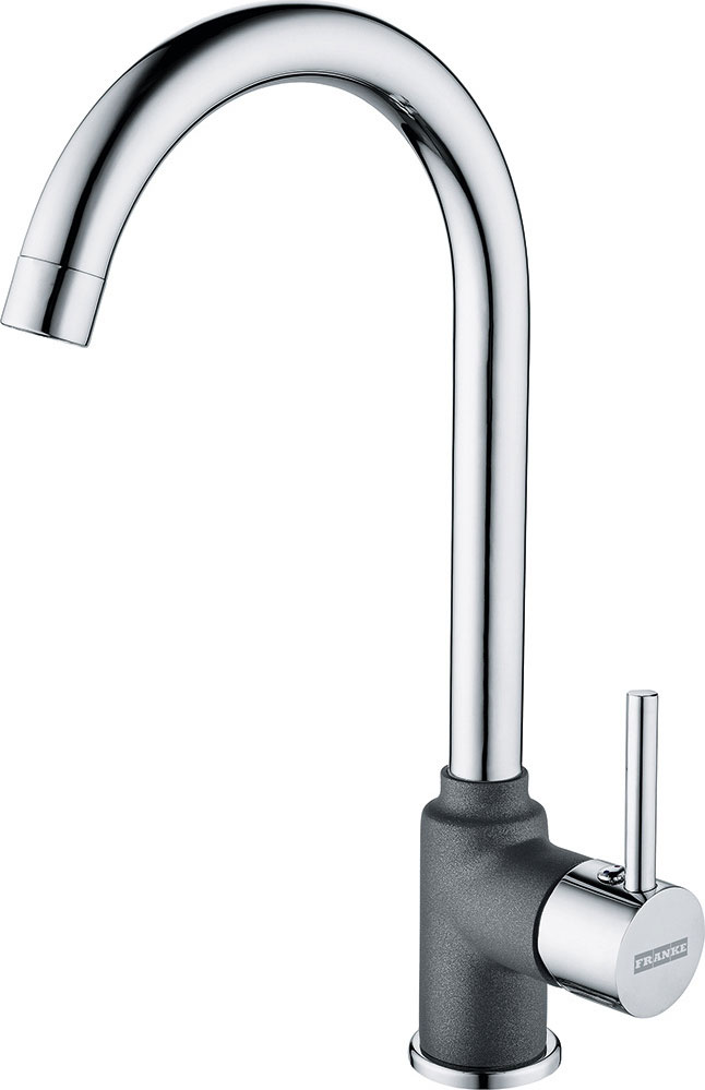 Αναμεικτική μπαταρία κουζίνας με ψηλό περιστρεφόμενο ρουξούνι 360° της FRANKE μοντέλο: POLA Standard Chrome / Graphite. Οι μπαταρίες Franke έχουν κατασκευαστεί με βάση κορυφαία πρότυπα. Η αρμονία του design, των σχημάτων και των υλικών δημιουργούν απαράμιλλη αισθητική, αναδεικνύοντας κάθε κουζίνα.