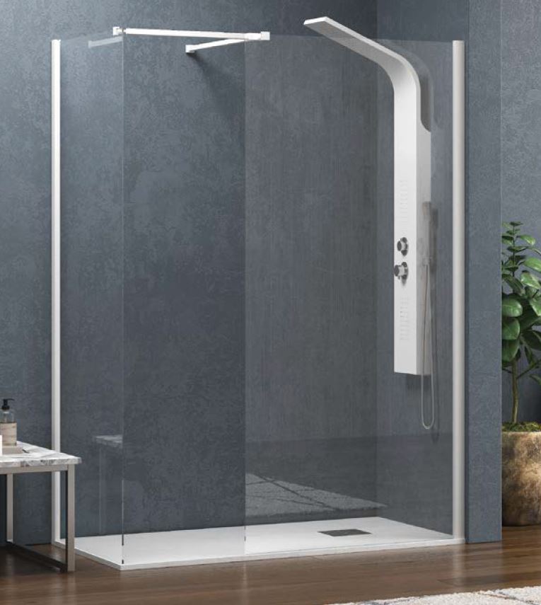 Διαχωριστικό καμπίνα ντουζιέρας σταθερό πάνελ ελεύθερης τοποθέτησης, Karag μοντέλο WALKIN 2 BIANCO MATT 70cm, ύψος 200cm κρύσταλλο ασφαλείας 8 mm Tempered διαφανές, μεταλλική τηλεσκοπική αντηρίδα στήριξης μεταλλικά μέρη προφίλ λευκό ματ. Στην τιμή δεν συμπεριλαμβάνεται η ντουζιέρα και η στήλη ντους