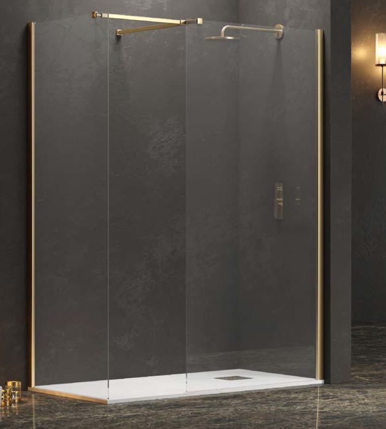 Διαχωριστικό καμπίνα ντουζιέρας σταθερό πάνελ ελεύθερης τοποθέτησης, Karag μοντέλο WALKIN 2 ORO 70cm, ύψος 200cm κρύσταλλο ασφαλείας 8 mm Tempered διαφανές, μεταλλική τηλεσκοπική αντηρίδα στήριξης μεταλλικά μέρη προφίλ χρυσό γυαλιστερό. Στην τιμή δεν συμπεριλαμβάνεται η ντουζιέρα και η στήλη ντους