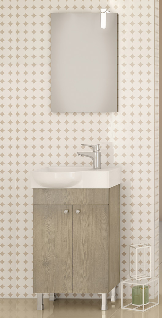 Έπιπλο μπάνιου Drop της σειράς PRESTIGE μοντέλο Litos 45 PL Wood. Επιδαπέδια βάση επίπλου, ενιαίος αποθηκευτικός χώρος δύο πόρτες, νιπτήρας πορσελάνης Monoblock, υποδοχή βρύσης αριστερά ή δεξιά κατόπιν επιλογής, καθρέπτης κρεμαστός. Κομψότητα με στυλ. Μοντέρνες λύσεις που ξεχωρίζουν, για ένα μπάνιο με προσωπικότητα. Η μπαταρία τα αξεσουάρ μπάνιου και φωτιστικό δεν συμπεριλαμβάνονται στην τιμή