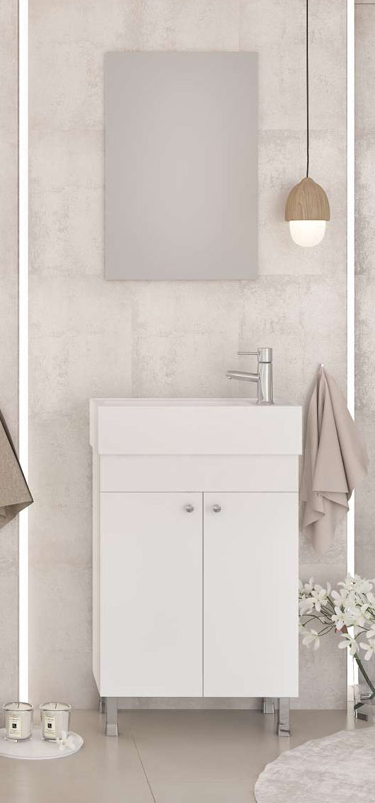 Έπιπλο μπάνιου Drop της σειράς PRESTIGE μοντέλο Litos 50 SG White. Επιδαπέδια βάση επίπλου, ενιαίος αποθηκευτικός χώρος δύο πόρτες, νιπτήρας πορσελάνης profil 12 cm, καθρέπτης κρεμαστός. Κομψότητα με στυλ. Μοντέρνες λύσεις που ξεχωρίζουν, για ένα μπάνιο με προσωπικότητα. Η μπαταρία τα αξεσουάρ μπάνιου και φωτιστικό δεν συμπεριλαμβάνονται στην τιμή
