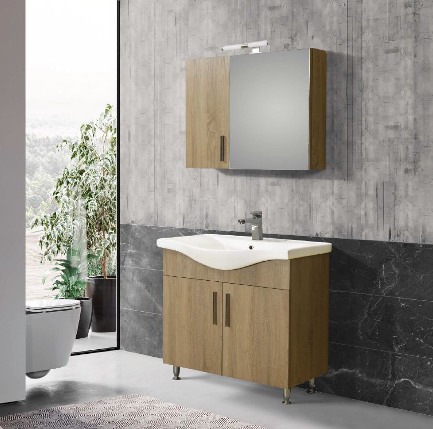 Μοντέρνο έπιπλο μπάνιου σετ της MARTIN σειρά SIENA μοντέλο SONOMA 90. Επιδαπέδια βάση επίπλου, με ενιαίους αποθηκευτικούς χώρους, νιπτήρας πορσελάνης, καθρέπτης κρεμαστός και φωτιστικό. Η σύνθεση SIENA εκφράζει την τέλεια αντίθεση πολυτελούς και απλού. Η σειρά SIENA ακολουθεί τη σύγχρονη λογική των επίπλων προσφέροντας έναν κόσμο εργονομίας και δημιουργικών λύσεων. H στήλη, το φωτιστικό και η μπαταρία δεν συμπεριλαμβάνεται στην τιμή.