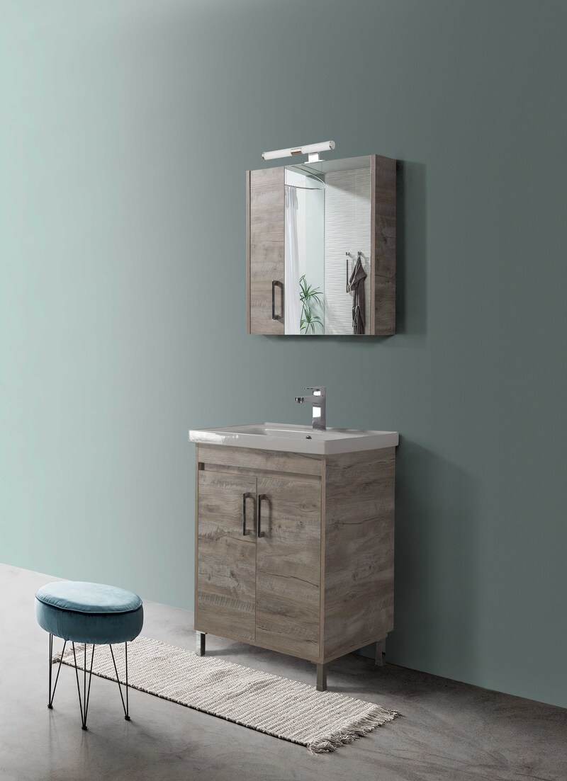 Μοντέρνο έπιπλο μπάνιου σετ της MARTIN σειρά SAVINA μοντέλο NATURAL OAK 65. Επιδαπέδια ή κρεμαστή βάση επίπλου, με αποθηκευτικούς χώρους, νιπτήρας πορσελάνης, καθρέπτης κρεμαστός και φωτιστικό. Η σύνθεση SAVINA εκφράζει την τέλεια αντίθεση πολυτελούς και απλού. Η σειρά SAVINA ακολουθεί τη σύγχρονη λογική των επίπλων προσφέροντας έναν κόσμο εργονομίας και δημιουργικών λύσεων. H στήλη, το φωτιστικό και η μπαταρία δεν συμπεριλαμβάνεται στην τιμή