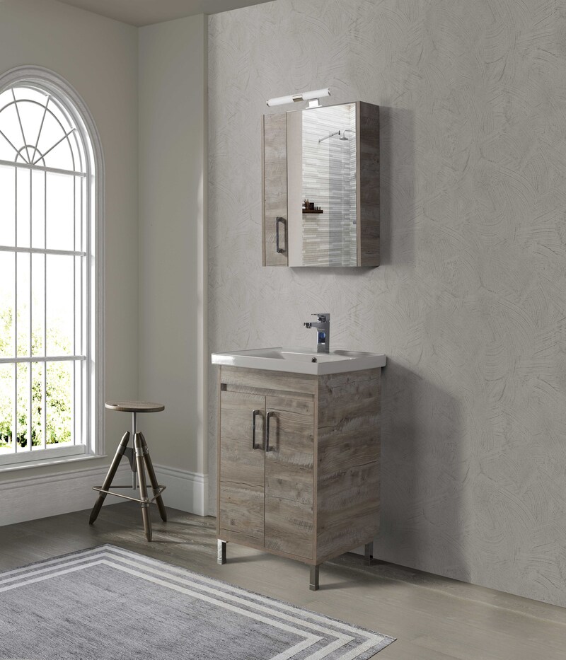 Μοντέρνο έπιπλο μπάνιου σετ της MARTIN σειρά SAVINA μοντέλο CEMENT 55. Επιδαπέδια ή κρεμαστή βάση επίπλου, με αποθηκευτικούς χώρους, νιπτήρας πορσελάνης, καθρέπτης κρεμαστός και φωτιστικό. Η σύνθεση SAVINA εκφράζει την τέλεια αντίθεση πολυτελούς και απλού. Η σειρά SAVINA ακολουθεί τη σύγχρονη λογική των επίπλων προσφέροντας έναν κόσμο εργονομίας και δημιουργικών λύσεων. H κρεμαστή στήλη, το φωτιστικό και η μπαταρία δεν συμπεριλαμβάνεται στην τιμή.