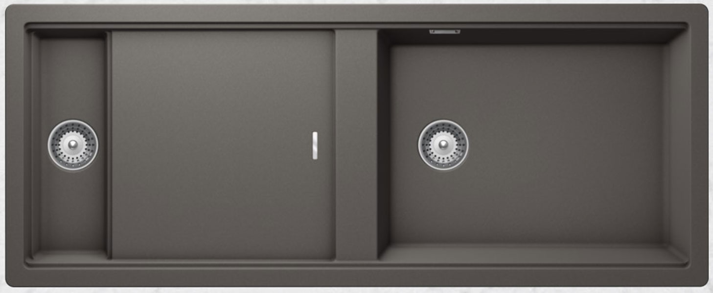 Υποκαθήμενος νεροχύτης ορυκτού γρανίτη με δύο ασύμμετρες γούρνες και ποδιά, SCHOCK μοντέλο: CRISTADUR PREPSTATION 81500U Silverstone 114x46 cm. Μια πλήρης γκάμα νεροχυτών, που διακρίνονται για την εξαιρετική τους αντοχή, την υψηλή ποιότητα και τα φυσικά χρώματα, συνδυάζουν άψογα την κομψότητα και την εργονομία.