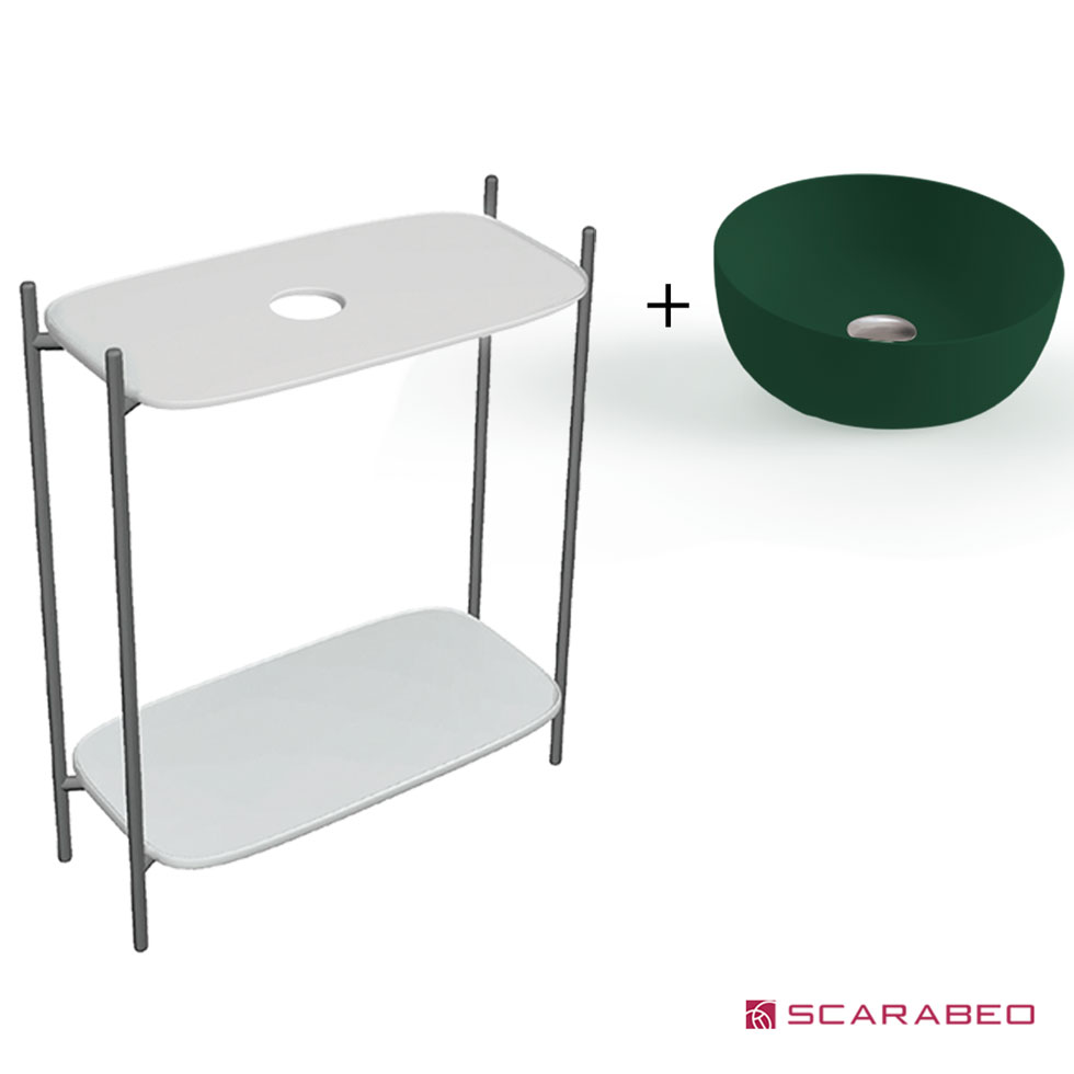 Έπιπλο μπάνιου πάγκος Diva 75 27031510-NROP4141 χωρίς οπή για μπαταρία, βάση νιπτήρα και ράφι από πορσελάνη χρώμα Pearl (White Matt) - σκελετός μεταλλικός, χρώμα black matt και νιπτήρας στρογγυλός επιτραπέζιος πορσελάνης υψηλής ποιότητας, SCARABEO σειρά GLAM 1808-900 Musk Ø33 cm βάθος γούρνας 9 cm χωρίς υπερχείλιση. Άριστη ποιότητα που εξασφαλίζει την απαιτούμενη αντοχή και διαχρονικότητα.
