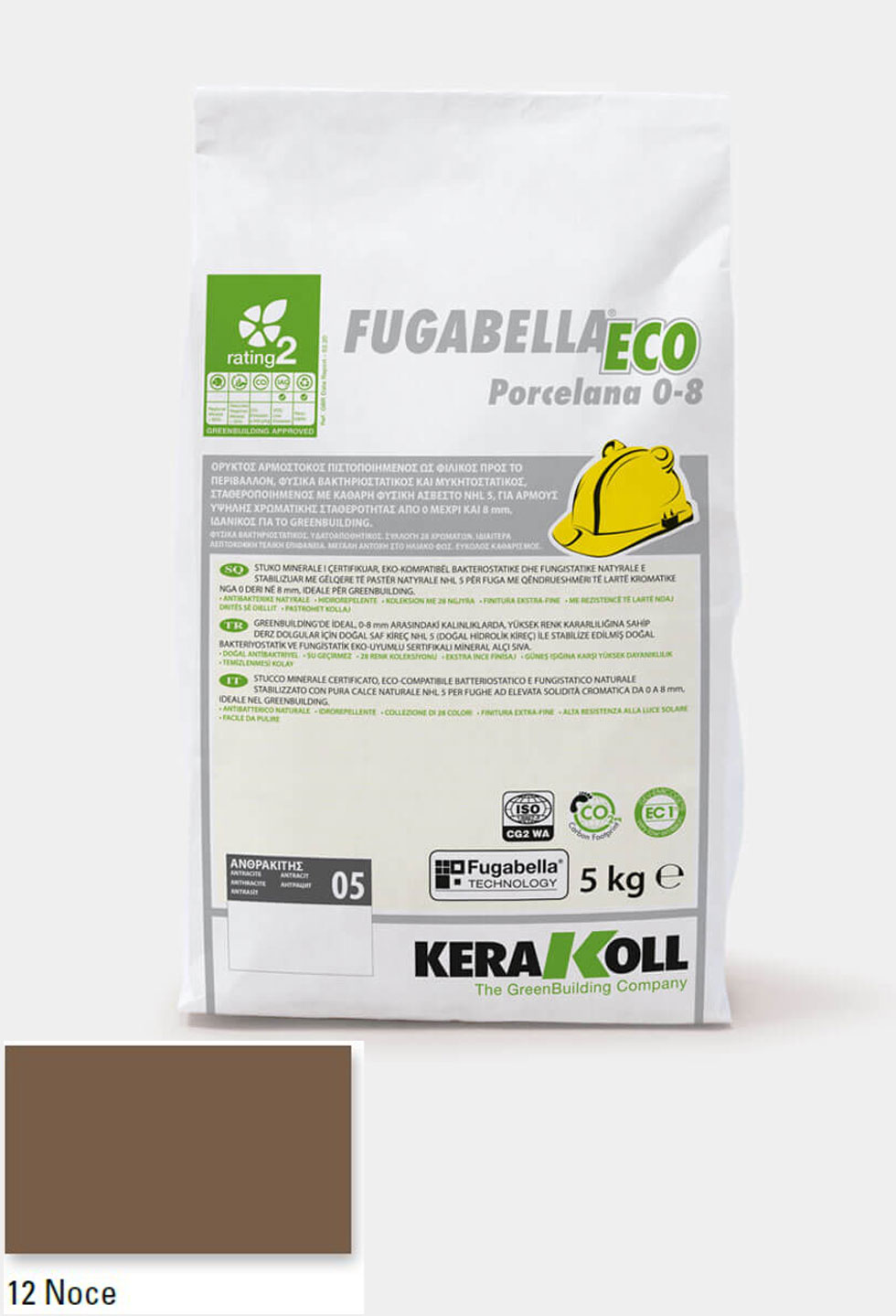 Ορυκτός αρμόστοκος, πιστοποιημένος, φιλικός προς το περιβάλλον, φυσικά βακτηριοστατικός και μυκητοστατικός σταθεροποιημένος με καθαρή φυσική άσβεστο NHL 5, KERAKOLL Fugabella Eco Porcelana 0‑8 Noce 12 συσκευασία 5kgr, για αρμούς υψηλής χρωματικής σταθερότητας από 0 μέχρι και 8 mm, ιδανικός για το GreenBuilding.