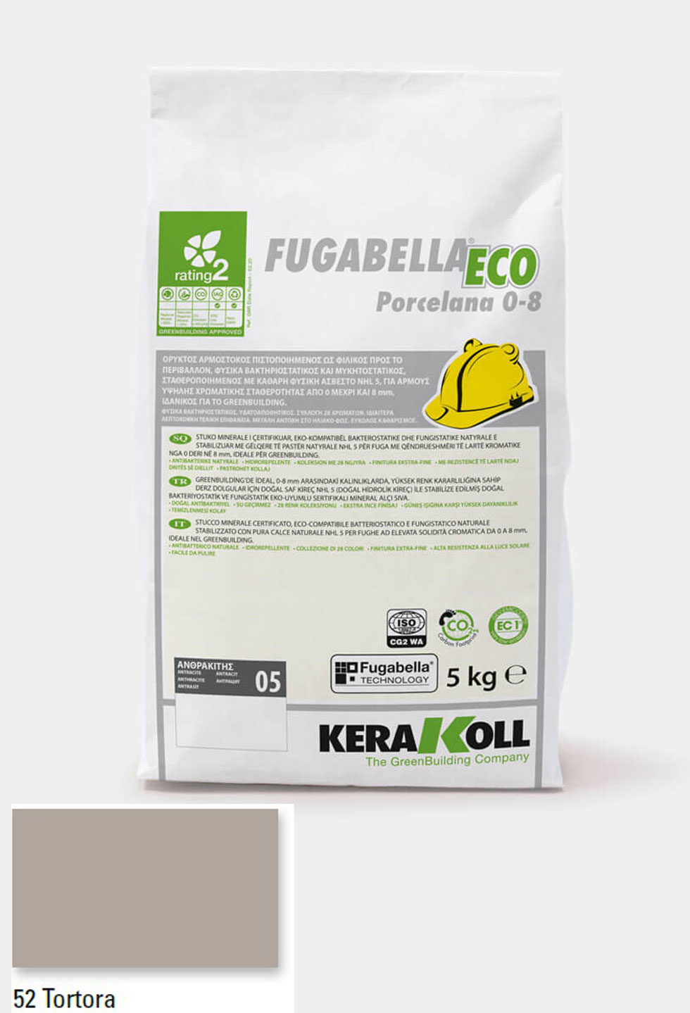 Ορυκτός αρμόστοκος, πιστοποιημένος, φιλικός προς το περιβάλλον, φυσικά βακτηριοστατικός και μυκητοστατικός σταθεροποιημένος με καθαρή φυσική άσβεστο NHL 5, KERAKOLL Fugabella Eco Porcelana 0‑8 Tortora 52 συσκευασία 5kgr, για αρμούς υψηλής χρωματικής σταθερότητας από 0 μέχρι και 8 mm, ιδανικός για το GreenBuilding.