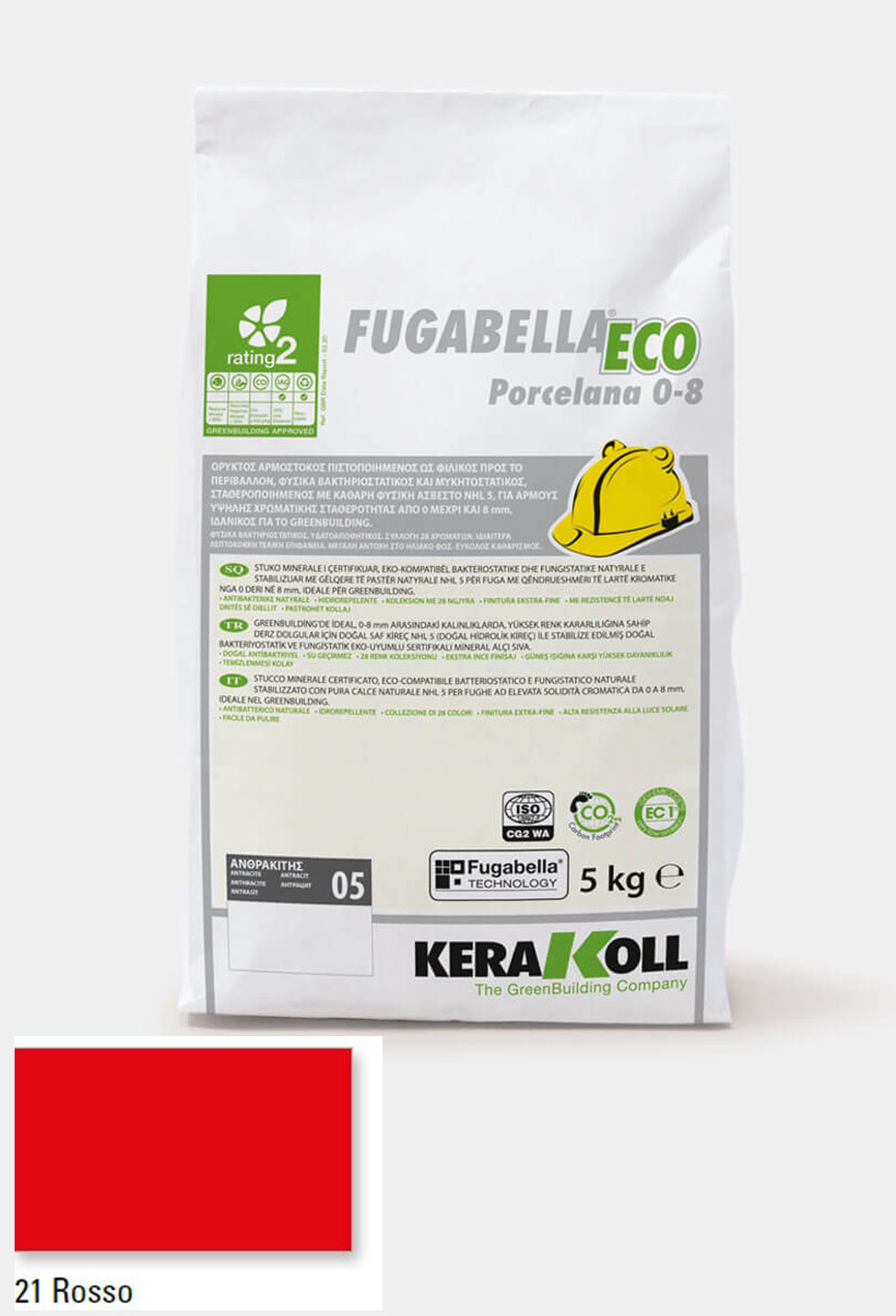 Ορυκτός αρμόστοκος, πιστοποιημένος, φιλικός προς το περιβάλλον, φυσικά βακτηριοστατικός και μυκητοστατικός σταθεροποιημένος με καθαρή φυσική άσβεστο NHL 5, KERAKOLL Fugabella Eco Porcelana 0‑8 Rosso 21 συσκευασία 5kgr, για αρμούς υψηλής χρωματικής σταθερότητας από 0 μέχρι και 8 mm, ιδανικός για το GreenBuilding.