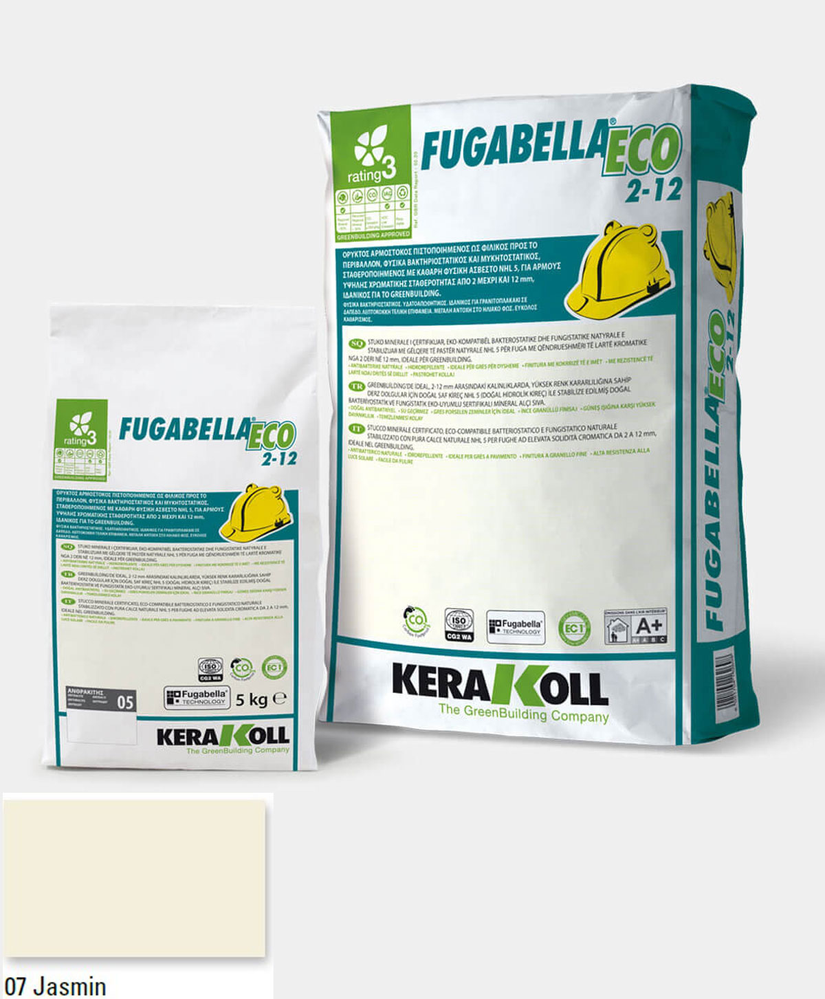 Ορυκτός αρμόστοκος, πιστοποιημένος, φιλικός προς το περιβάλλον, φυσικά βακτηριοστατικός και μυκητοστατικός σταθεροποιημένος με καθαρή φυσική άσβεστο NHL 5, KERAKOLL Fugabella Eco 2‑12 Jasmin 07 συσκευασία 5kgr, για αρμούς υψηλής χρωματικής σταθερότητας από 0 μέχρι και 8 mm, ιδανικός για το GreenBuilding.