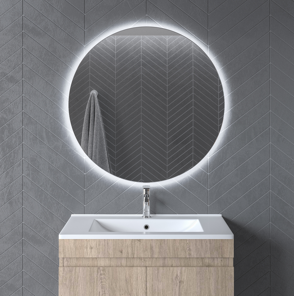 Έπιπλο μπάνιου καθρέπτης Led φωτιζόμενος πίσω (φωτισμός περιμετρικός), στρογγυλός, ενεργειακή κλάση Α της MARTIN BATH μοντέλο M186 Ø90 cm. Καθρέπτης με μοντέρνο σχεδιασμό και minimal αισθητική προσφέροντας έναν κόσμο εργονομίας και δημιουργικών λύσεων. Ο νιπτήρας, τα αξεσουάρ και η μπαταρία δεν συμπεριλαμβάνονται στην τιμή. Ιδανικός για χρήση σε γυμναστήρια, εστιατόρια, Σπα, ξενοδοχεία , γραφεία, μπάνια πολυτέλειας κ.α