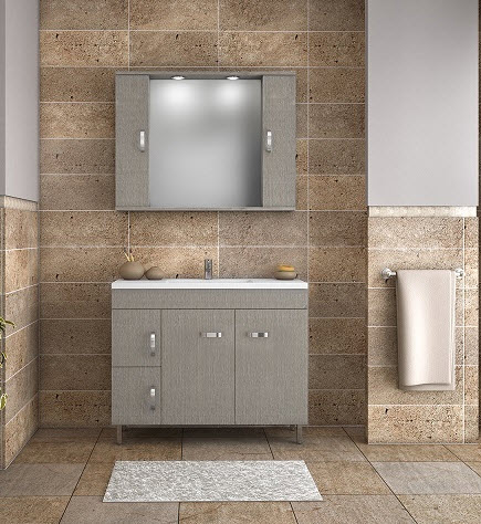 Έπιπλο μπάνιου Drop της σειράς Economic μοντέλο MILITOS 100 Brown 2 100cm. Επιδαπέδια βάση επίπλου, τρείς αποθηκευτικοί χώροι τέσσερις πόρτες, νιπτήρας πορσελάνης προφίλ 4 cm, καθρέπτης κρεμαστός με δύο δεξί και αριστερό ερμάριο από μελαμίνη Brown και δύο σποτάκια. Κομψότητα με στυλ. Μοντέρνες λύσεις που ξεχωρίζουν, για ένα μπάνιο με προσωπικότητα.