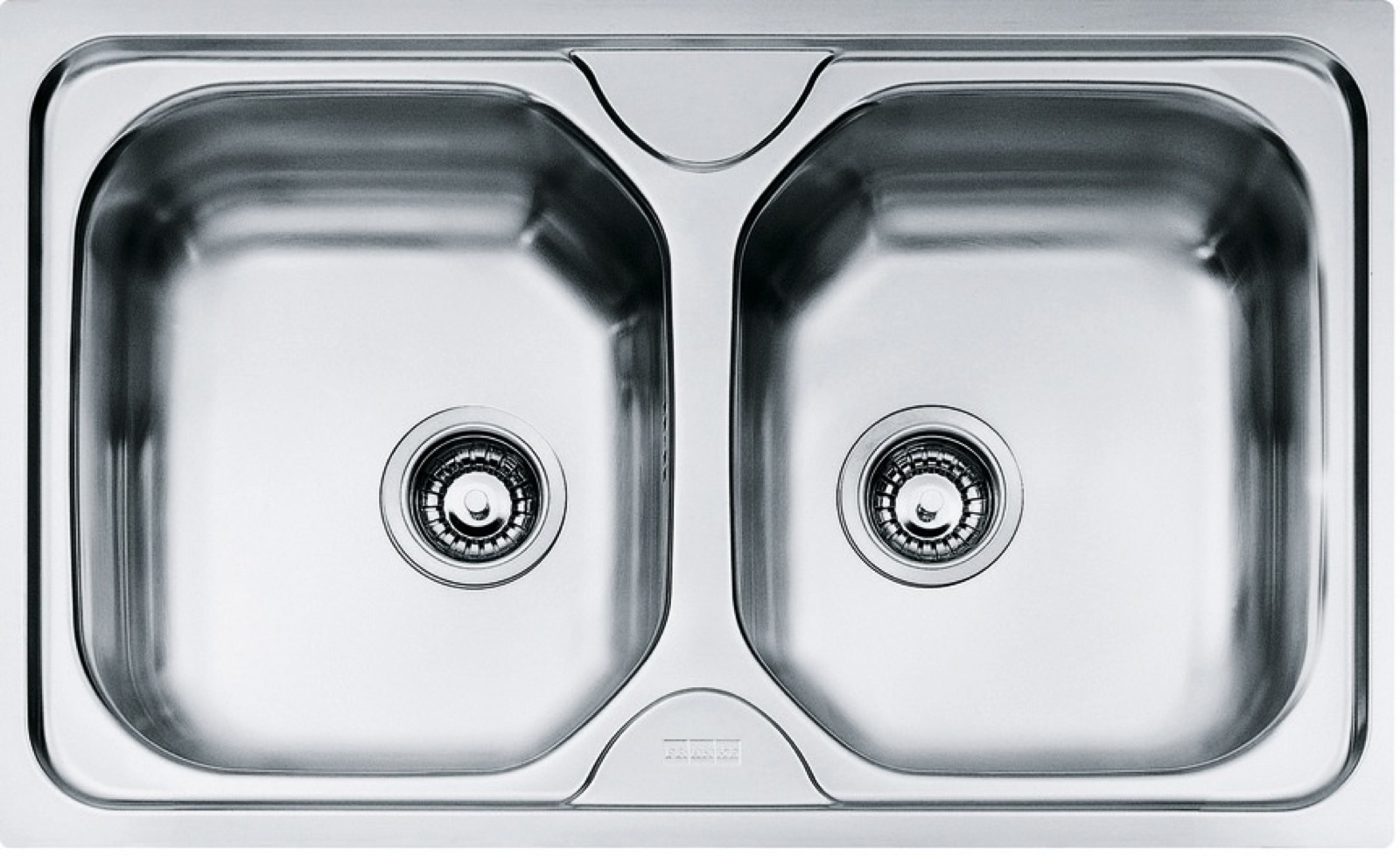 Ανοξείδωτος ένθετος νεροχύτης, με δύο συμμετρικές γούρνες χωρίς ποδιά,