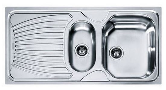Ανοξείδωτος ένθετος νεροχύτης, αντιστρεφόμενος με δύο ασύμμετρες γούρνες και ποδιά,