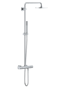 Στήλη ντουζιέρας με ντους χειρός, κεφαλή ντους, διανεμητή και Safety θερμοστατική μπαταρία της GROHE σειρά RAINSHOWER SYSTEM 210 μοντέλο 27032001 φινίρισμα Chrome