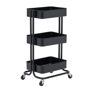 Έπιπλο βοηθητικό μεταλλικό της MARTIN σειρά CART Trolley μοντέλο M515.01 χρώμα Μαύρο διαστάσεων 43x35x79 cm. Μπορεί να χρησιμοποιηθεί ως βοηθητικό έπιπλο στην κουζίνα ,στο μπάνιο ,στο παιδικό ,στο γραφείο, στο σαλόνι ή οπουδήποτε χρειάζεστε βοηθητικό τραπεζάκι για διακόσμηση και αποθήκευση. Με 3 βοηθητικούς χώρους καλάθια διχτυωτά εσωτερικά, με λακαρισμένο φινίρισμα και 4 ροδάκια για εύκολη μετακίνηση! Δεν συμπεριλαμβάνονται τα διακοσμητικά. Διατίθενται αμοντάριστα σε flat pack συσκευασία