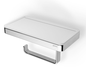 Χαρτοθήκη τοίχου αντιστρεφόμενη με εταζέρα για κινητό τηλέφωνο της GEESA σειρά FRAME 8824, φινίρισμα White Matt / Chrome